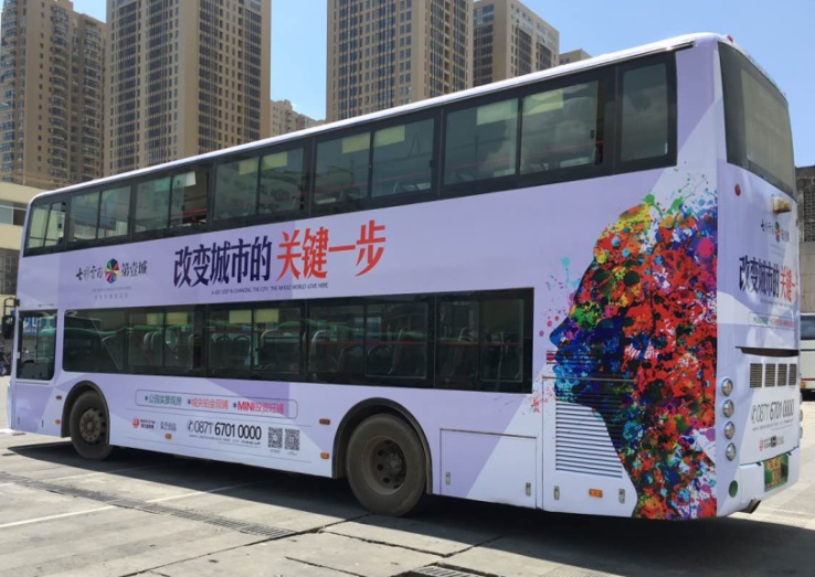 昆明市区主干道豪华双侧大巴车身【图片待完善】