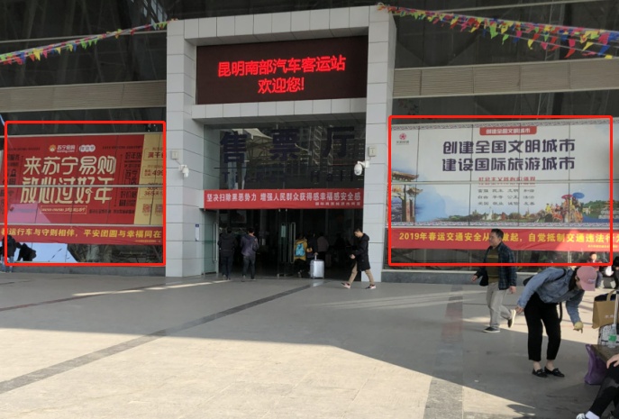 昆明南部汽车客运站售票厅入口两侧玻璃贴【图片待完善】